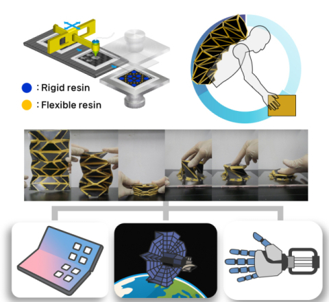 특히 종이접기 구조와 다중 고분자 토출공정(Multi-resin dispensing)을 융합하여, 탄소섬유와 케블라섬유의 강성과 연성을 선택적으로 구현한 전례 없는 복합재를 제시하였습니다.